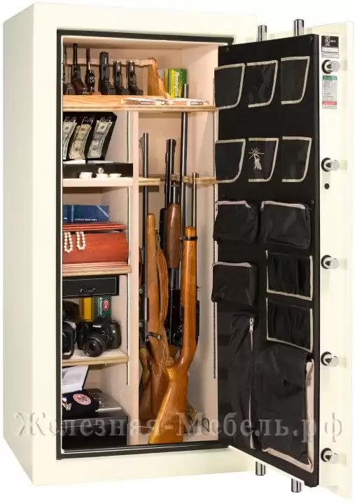 - внутренняя поверхность двери имеет держатели для пистолетов, карманы, держатели для ножей и т.п., удобные закрывающиеся сумки. Так же имеется специальнй закрывающийся пакет COOL POCKET™ для хранения особо важных документов. Он изготовлен из специальных материалов и обеспечивает дополнительную тепловую защиту;
