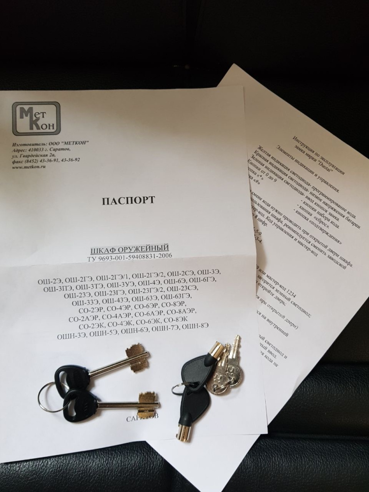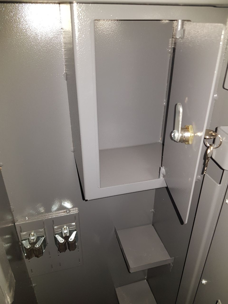 - Оружейный шкаф Меткон ОШ-23 на 2 ствола оснащен съемными полками и отделением под патроны.